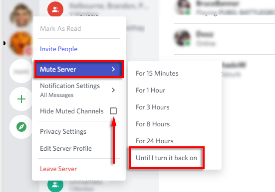 Not:Ne yazık ki, 18 yaşın üzerindeyseniz NSFW kanallarını engellemek için yerleşik bir ayar yoktur. Ancak, kanalı susturabilir ve sessiz kanalları kanal listenizde görünmeyecek şekilde gizleyebilirsiniz. Bunu yapmak için sunucuyu sağ tıklayın ve seçinSesini kapatmak. Ardından sunucu simgesini tekrar sağ tıklayın ve seçinSessiz kanalları gizle.