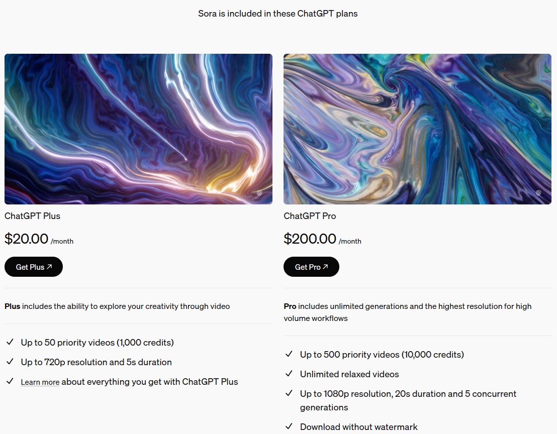 Openai, ayda 200 dolara mal olan bir ChatGPT Pro aboneliği duyurmuştu ve fiyat çılgın görünüyorken, şimdi mantıklı. Öte yandan, Chatgpt Plus'ın ayda sadece 20 dolar. Chatgpt Plus kullanıcıları, 50'ye kadar öncelikli video sunan ancak rahat videolara erişime izin vermeyen Sora için 1000 kredi alır. ChatGPT Pro kullanıcıları 500 öncelikli videoya (10.000 kredi) ve sınırsız rahat videolara erişebilir. Pro kullanıcıları filigran olmadan video indirebilir.