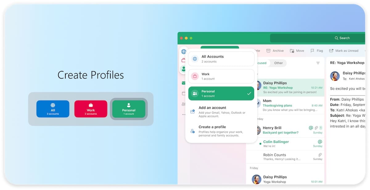 - Outlook profilleri, bir kullanıcının e -posta hesaplarını MacOS'taki Apple'ın odak özelliğine bağlar. Bu, kullanıcıların işteyken kişisel e -posta hesaplarından herhangi bir bildirim almamalarını sağlayacaktır.