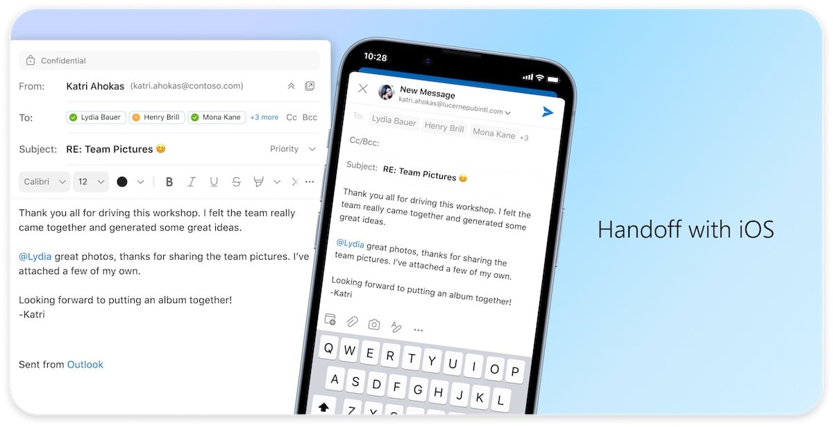 Microsoft ayrıca, kullanıcıların Mac için Outlook'u Microsoft'tan indirebilirken, kullanıcıların Mac ve iOS cihazı arasındaki uygulamalarda görevlere devam etmelerini sağlayan bir Apple özelliği olan Handoff'dan yararlanmak için Mac App Store'dan yüklemeleri gerektiğini paylaştı.