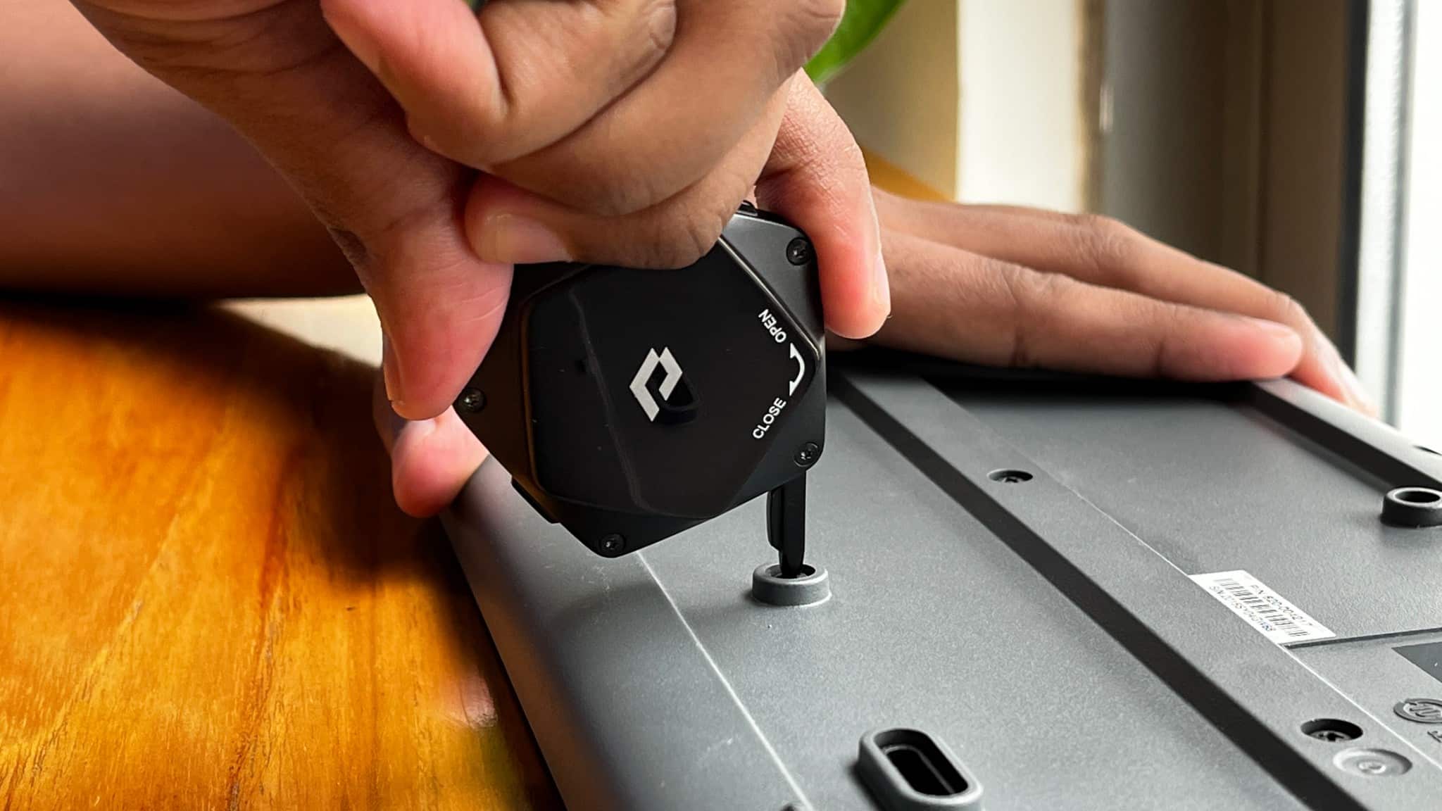 AirTag'ı PITA! Etiketine ekleme mekanizması zahmetsizdir ve gördüğüm en iyi uygulamalardan biridir. Açılış kapağı, üzerine basılmış Pitaka logosu ile parlak siyahtır. Açmak için kapağa basmanız ve hareket etmeniz gerekir.