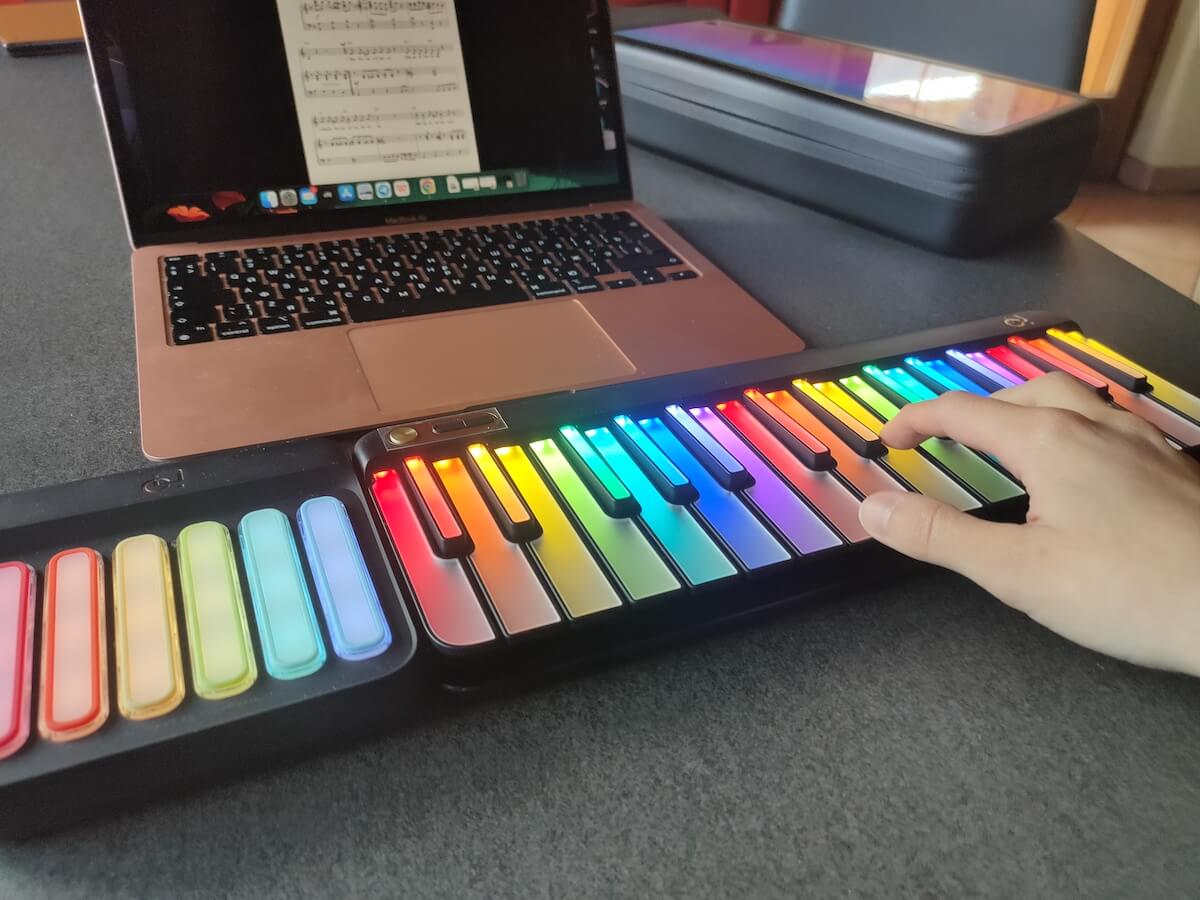 Piyano becerileri olanlar için, bu cihaz da taşınabilir bir klavye olarak iyi çalışır. Bu akıllı piyanoyu her yere götürebilir, becerilerinizi geliştirebilir ve hareket halindeyken yeni şarkılar uygulayabilirsiniz.
