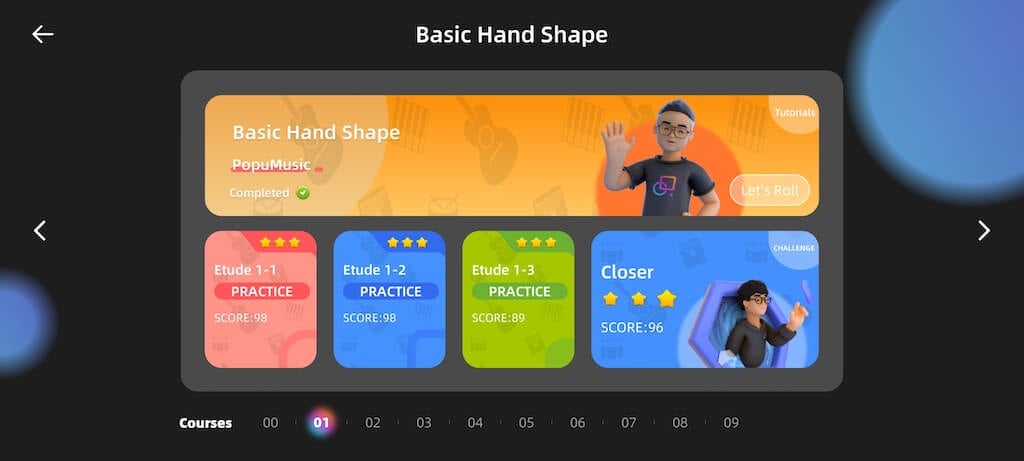 Görsel LED kılavuzları ve gerçek zamanlı geri bildirimler de parmak hareketlerinde ustalaşmanıza yardımcı olur. Kursa daha fazla dersler temel bilgileri güçlendirir ve fark etmeden önce asmaya başlayacaksınız.