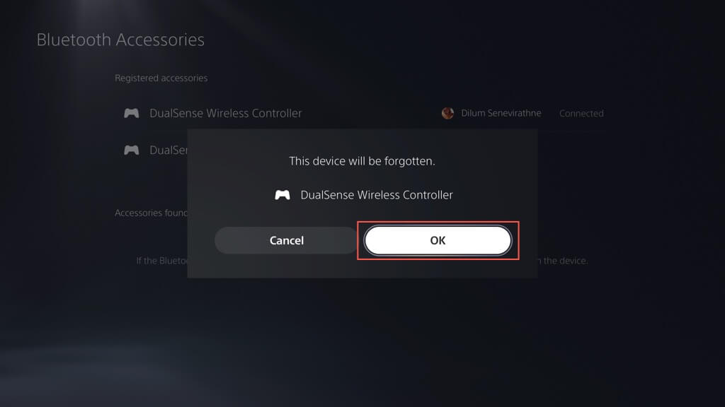 - Gidip gelmekAyarlar>Aksesuarlar>BluetoothAksesuarlarve Bluetooth bağlantılar listesinde bağlantıyı kesmek istediğiniz denetleyiciyi vurgulayın.