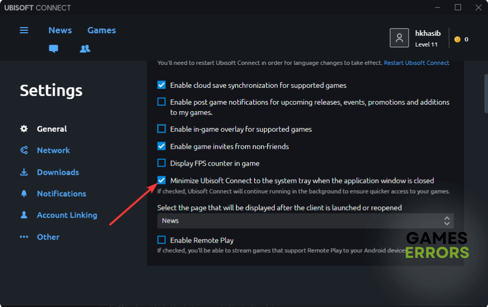 - Kontrol etmekUygulama penceresi kapatıldığında ubisoft sistem tepsisine bağlanın.