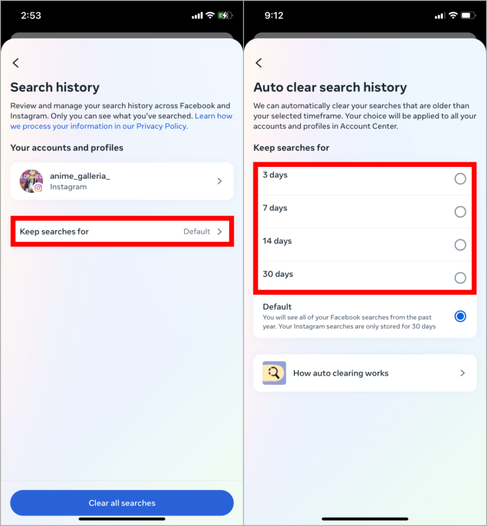 Instagram arama geçmişinizi temiz ve dağınık tutmak için sorunsuz bir yol istiyorsanız, yöntem 5 sizin içindir. Otomatik temiz arama geçmişini etkinleştirerek ve kurarak, Instagram feed'inizin herhangi bir manuel çaba olmadan taze kalmasını sağlayabilirsiniz.