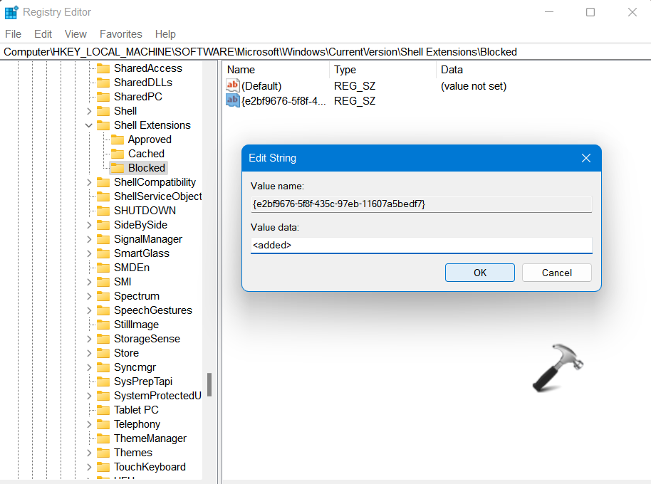 HKEY_LOCAL_MACHINESOFTWAREMicrosoftWindowsCurrentVersionShell Extensions