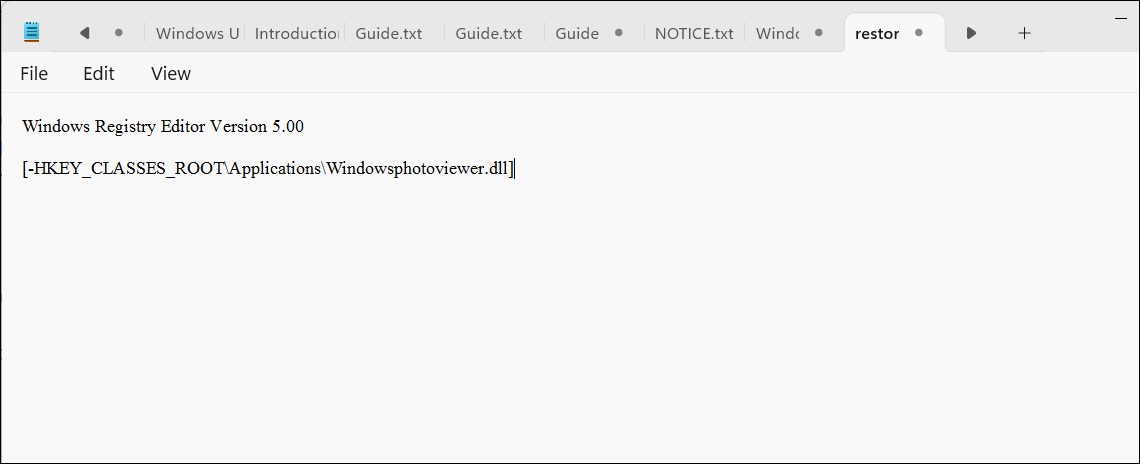 Windows Registry Editor Version 5.00 [-HKEY_CLASSES_ROOTApplicationsWindowsphotoviewer.dll]
