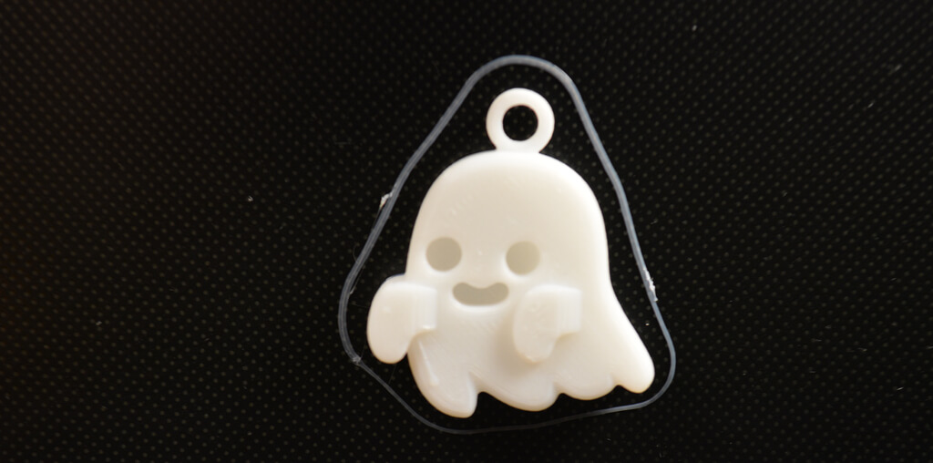İlk katmandan en çok etkilendik - hayaletin alt tarafı. Baskıya başladığımızda ekstrüderden biraz sızmamızın neden olduğu bir kusur dışında, ilk katman kusursuzdu. Aslında, cam plaka tarafından basılmış güzel bir dokuya sahipti.