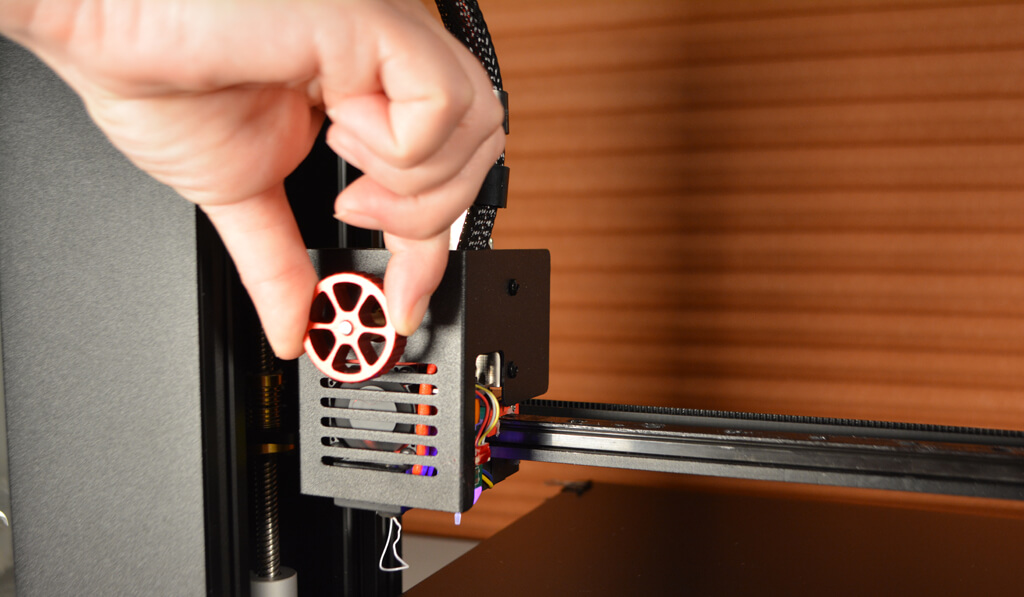Daha sonra filamanı, sağlanan yan kesicilerle önerilen 45 derecelik açıya indirdikten sonra yükledik. Filamanı, doğrudan ekstrüder motoruna bağlı tekerlek aracılığıyla çalışma önleyici filaman sensöründen sıcaklığa koştuk.