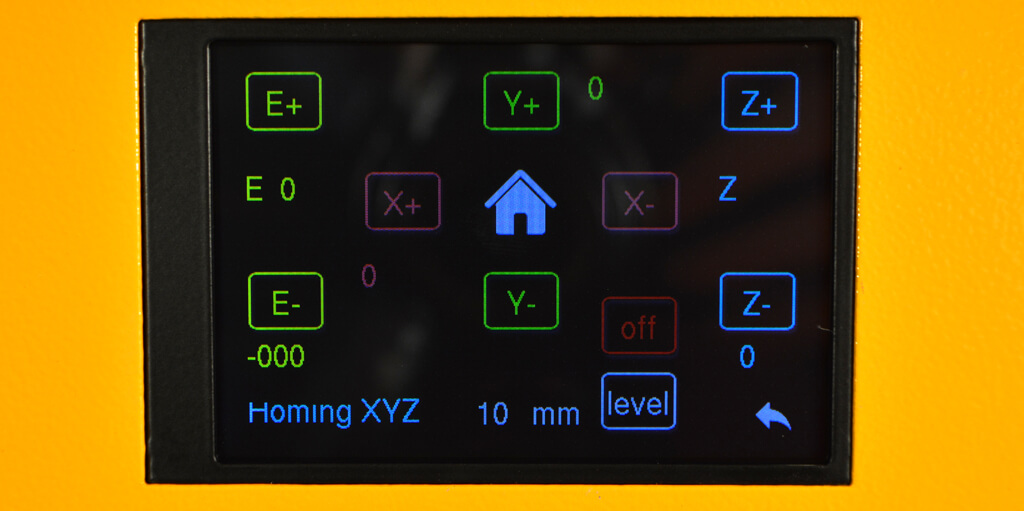 Dokunmatik ekran arayüzü aracılığıyla yazıcıyı homurarak kılavuzdaki talimatları izlemeye devam ettik. Otomatik yatak tesviye fonksiyonunu gerçekleştirdik ve daha sonra nozulu ve yatağı dokunmatik ekran aracılığıyla önceden ısıttık. Sıcaklık ve mesafe kaydırıcıları üzerindeki musluk ve sürükleme kontrolleri tarafından hoş bir sürpriz oldu - daha hızlı ve artı ve eksi simgelere tekrar tekrar bastırmaktan daha kolay (bunu da yapabilirsiniz).