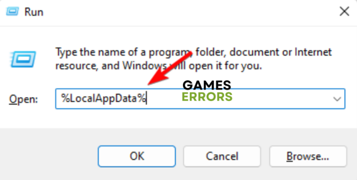 2. BasınWindows Anahtarı + Rsonra yazın "%localAppata%”Ve Enter tuşuna basın.