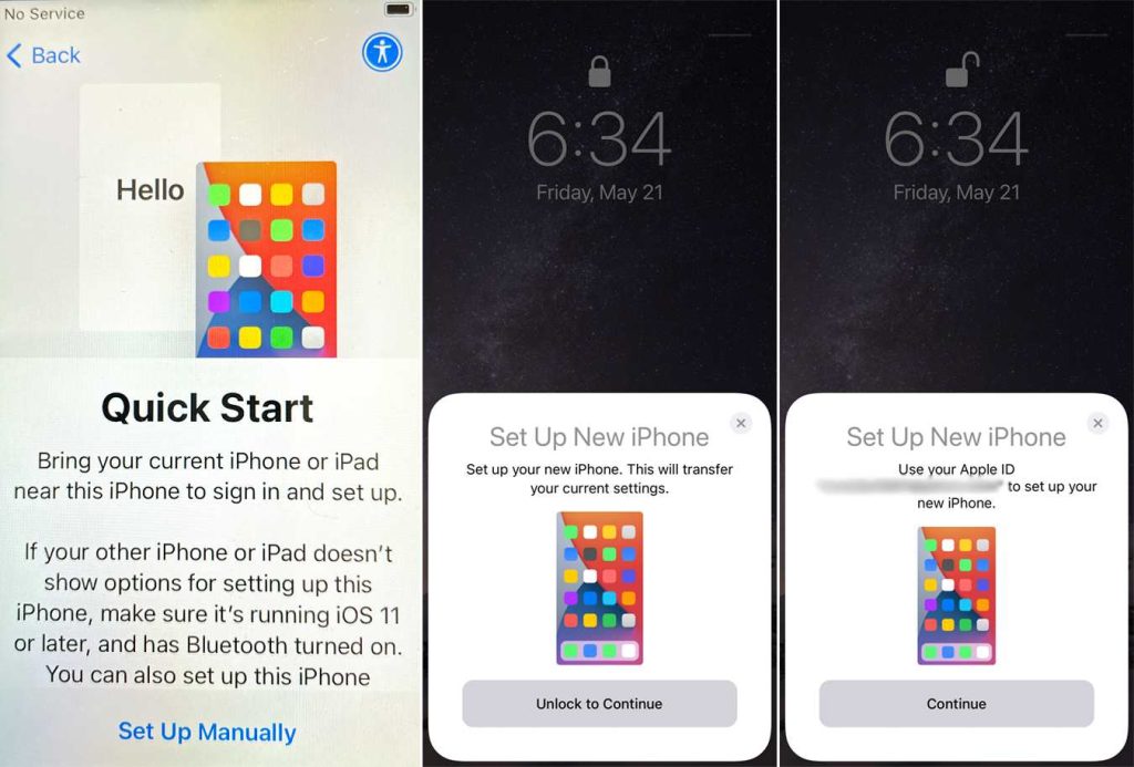 3. Yeni iPhone'unuzu açın ve “Hızlı Başlangıç” ekranına ulaşana kadar kurulum istemlerini izleyin.