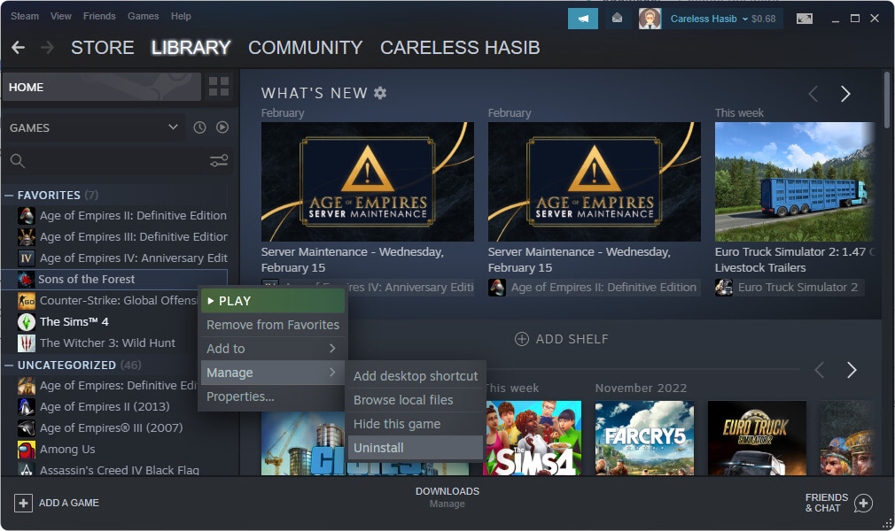- Sağ tıklayınOrmanın oğullarıVe sonra tıklayınKaldırmak.