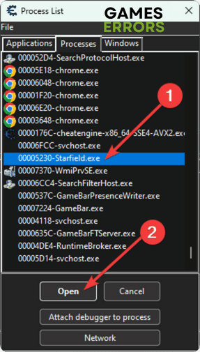 - Starfield.exe'yi bulun, seçin ve ardından Aç'ı tıklayın.