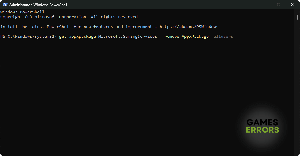 get-appxpackage Microsoft.GamingServices | remove-AppxPackage -allusers