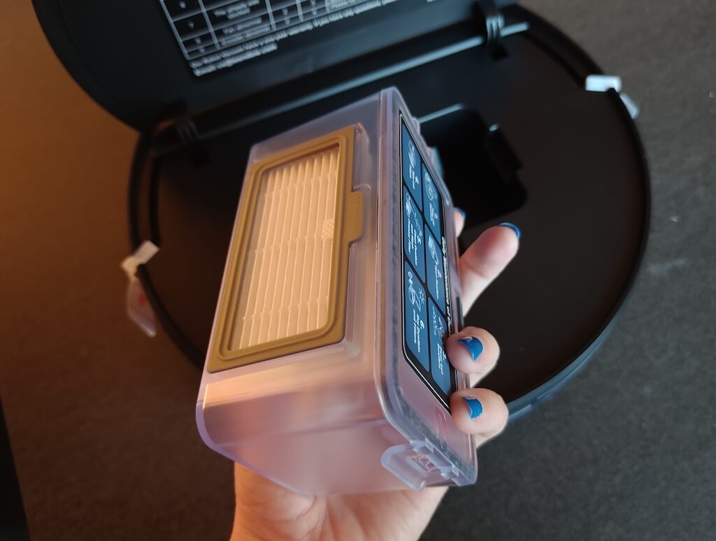 Vakumun üst panelinde, güç ve şarj için sezgisel düğmeler bulacaksınız. Üst kapağı açtığınızda, vakumun içindeki küçük çöp kutusunu ve filtresini göreceksiniz. Toz kutusu sadece 200 mL kapasiteye sahiptir, bu da biraz. Bu, özellikle büyük karmaşaları almak için G20'ye ihtiyacınız olduğunda, sık sık boşaltmanız gerektiği anlamına gelir.