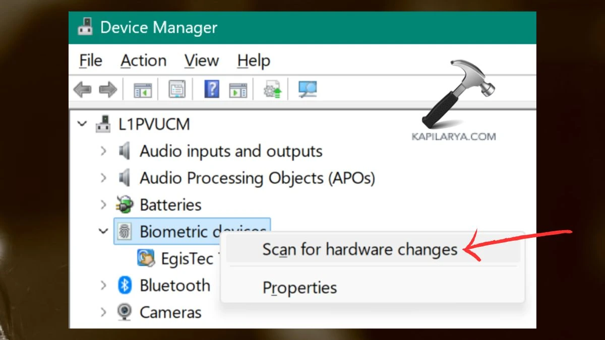 Düzeltme 2: Aygıt Yöneticisi'ndeki biyometrik aygıtı etkinleştir