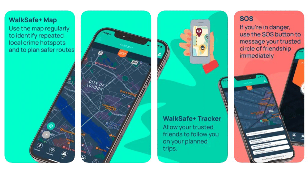 WalkSafe+, kullanıcıların acil durumlarda tüm arkadaşlarını çevrelerinde uyarmak için kullanıcıların konumlarını paylaşabilecekleri güvenilir bir arkadaş dairesi oluşturmalarına olanak tanır.