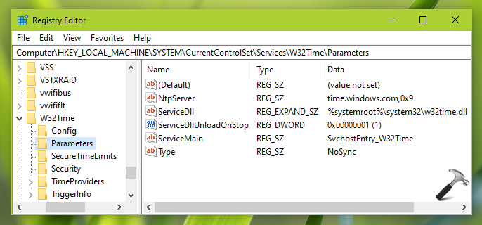 HKEY_LOCAL_MACHINESYSTEMCurrentControlSetServicesW32TimeParameters