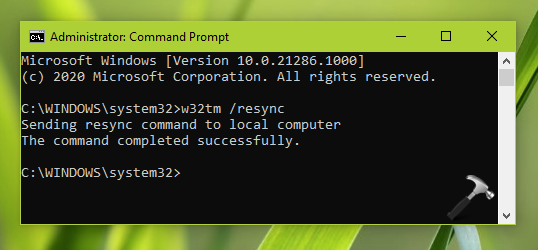 Zamanı tekrar senkronize edersenizw32tm /resyncŞimdi komuta, herhangi bir hata olmadan çalışmalıdır.