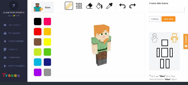 2.) Tynker tarafından Minecraft Cilt Editörü (çevrimiçi):