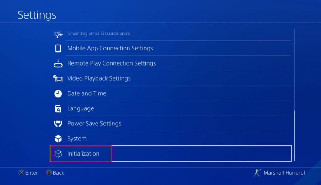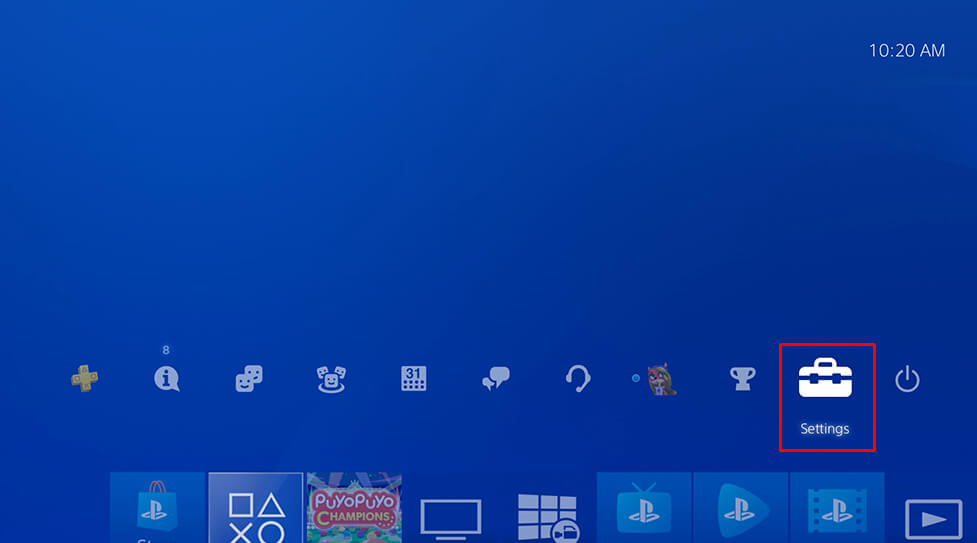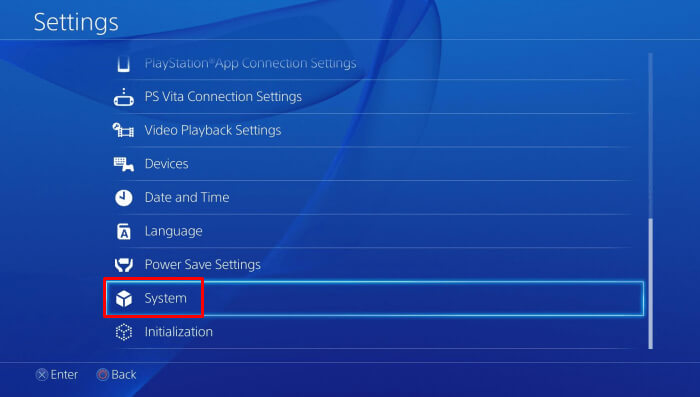 - SeçmekPS4'ü başlatınseçenek.