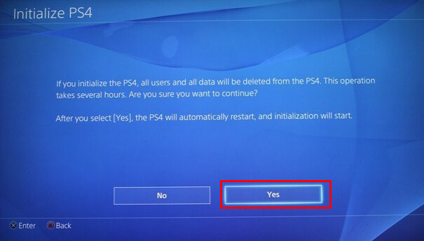 - Başlatma işlemine başlamak içinEvetdüğme.