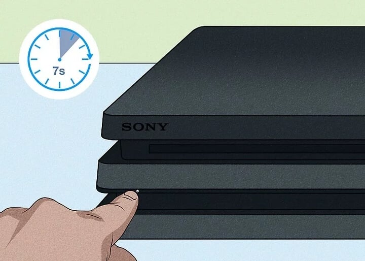 - İkinci bir bip sesi duyana kadar güç düğmesini basılı tutun. Yaklaşık yedi saniye sürecek. Güç düğmesinin konumu, sahip olduğunuz Sony PlayStation 4 konsolunun modeline bağlı olacaktır: