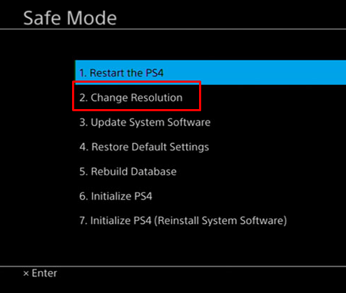 PS4'ünüzün çözünürlüğünü güvenli modda değiştirmek, siyah ekran sorunuyla başa çıkmanın bir başka etkili yoludur. Güvenli Mod bir teşhis modudur, bu nedenle PS4'ünüzün daha gelişmiş özelliklerine erişmenize ve veritabanını sıfırlamanıza veya ürün yazılımını yükseltmenize yardımcı olur.