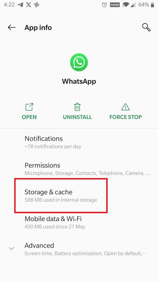 7. WhatsApp'ın (Android'de) Temiz Önbelleği