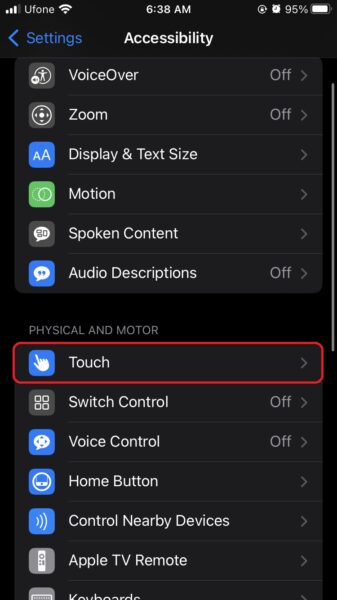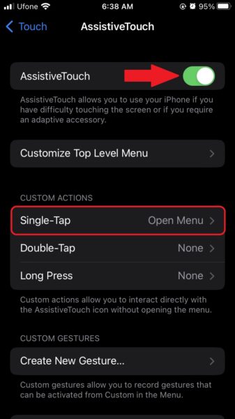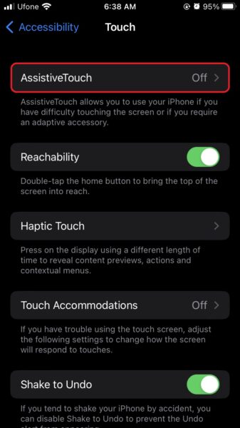 - SeçmekYardımcı dokunuşve bunu açık pozisyona geçin.