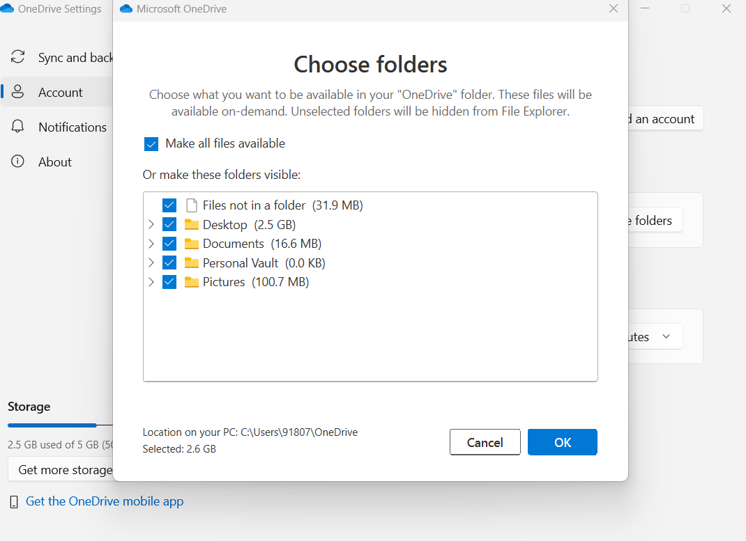 Sınırlama işlemini onayladıktan sonra, senkronize edilmiş onedrive dosyalarını Windows 11 bilgisayarınızdan kaldırma seçeneğiniz olacaktır: