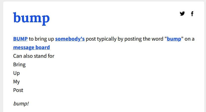 Bazıları için “Bump” aynı zamanda “Gönderimi Getir” in bir kısaltmasıdır.