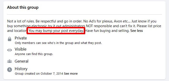 Yayınları çarpmanın bir başka yaygın nedeni de Facebook pazarında veya bir grupta bir şey satmanızdır. Bir süredir ve hala bir ürün satmadıysanız, çarpmak daha fazla insanın ona bakmasını sağlayabilir. Bu özellikle Facebook'taki gruplarda geçerlidir.