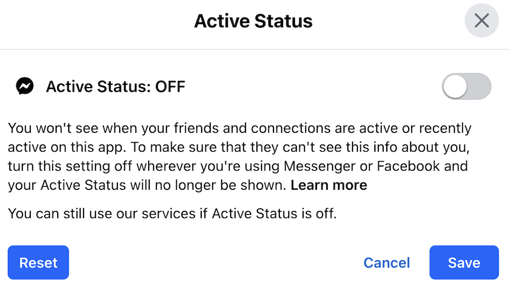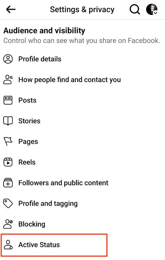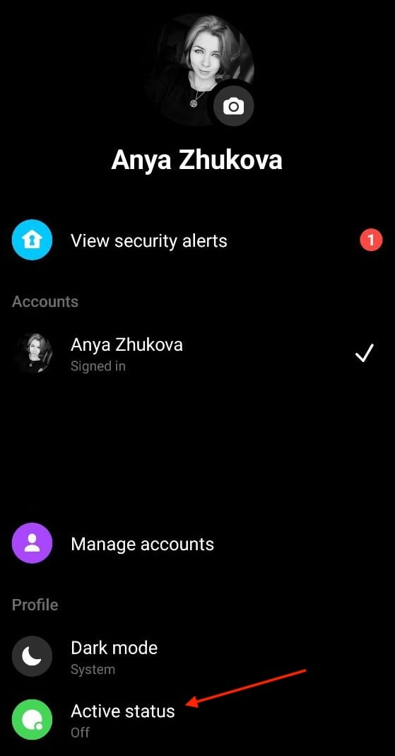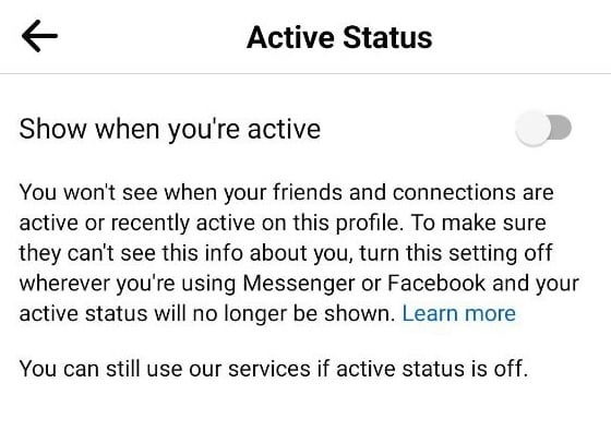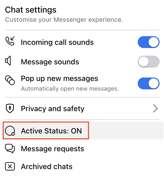 - Görene kadar aşağı kaydırAktif durum. Ardından, çevrimiçi durumunuzu gizlemek için kapatın.