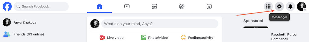 - Tarayıcınızda Facebook'u açın veHaberci simgesisağ üstte.