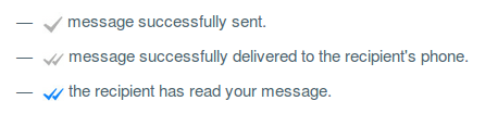 Birisi size bir mesaj gönderdiğinde tek bir gri kene işareti (veya bir onay işareti) görünür. İki gri kene, mesajın verildiği anlamına gelir. İki mavi keneye dönüştüklerinde, alıcının mesajı okuduğu anlamına gelir. Engellenen bir kişi yine de size bir mesaj gönderebilir, ancak asla teslim edilmeyecektir. Gönderen sadece bir gri kene görecek. “Mesajınızı Oku” bildirimi onlar için görünmez.