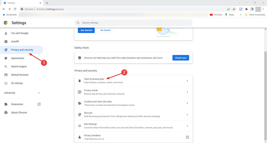 4. Adım:Ardından, sağ panelde “Göz atma verilerini temizleyin” bulun.
