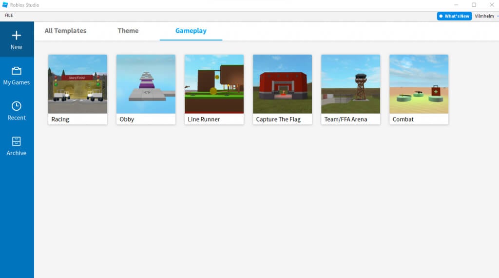 - Giriş yaptıktan sonra nihayet Roblox Studio'nun ana ekranını yapabilir ve başlamanıza yardımcı olacak tüm şablonları görüntüleyebilir.