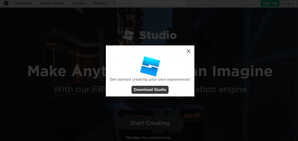 - Bilgisayarınızda zaten Roblox Studio'nun yüklü olup olmadığını kontrol ettikten sonra, birStüdyoyu İndirseçenek.