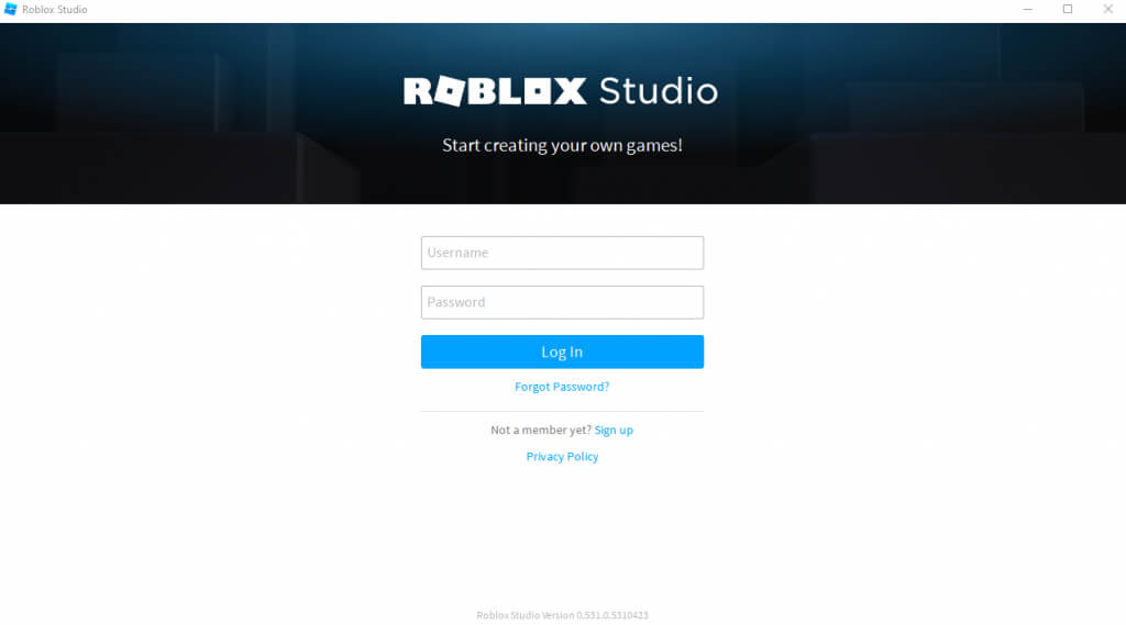- Roblox Studio'yu ilk kez açtıktan sonra, Roblox hesabınıza giriş yapmanız gerekecektir.