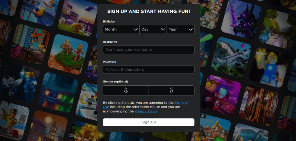 - Bunu ilk kez yaptıysa,Üye olmakÖnce bir hesap oluşturma seçeneği. Bir Roblox hesabı yapmak için ihtiyacınız olan tek şey bir kullanıcı adı ve şifredir, ancak henüz alınmayan bir kullanıcı adı bulmak için birkaç deneme gerektirebilir.