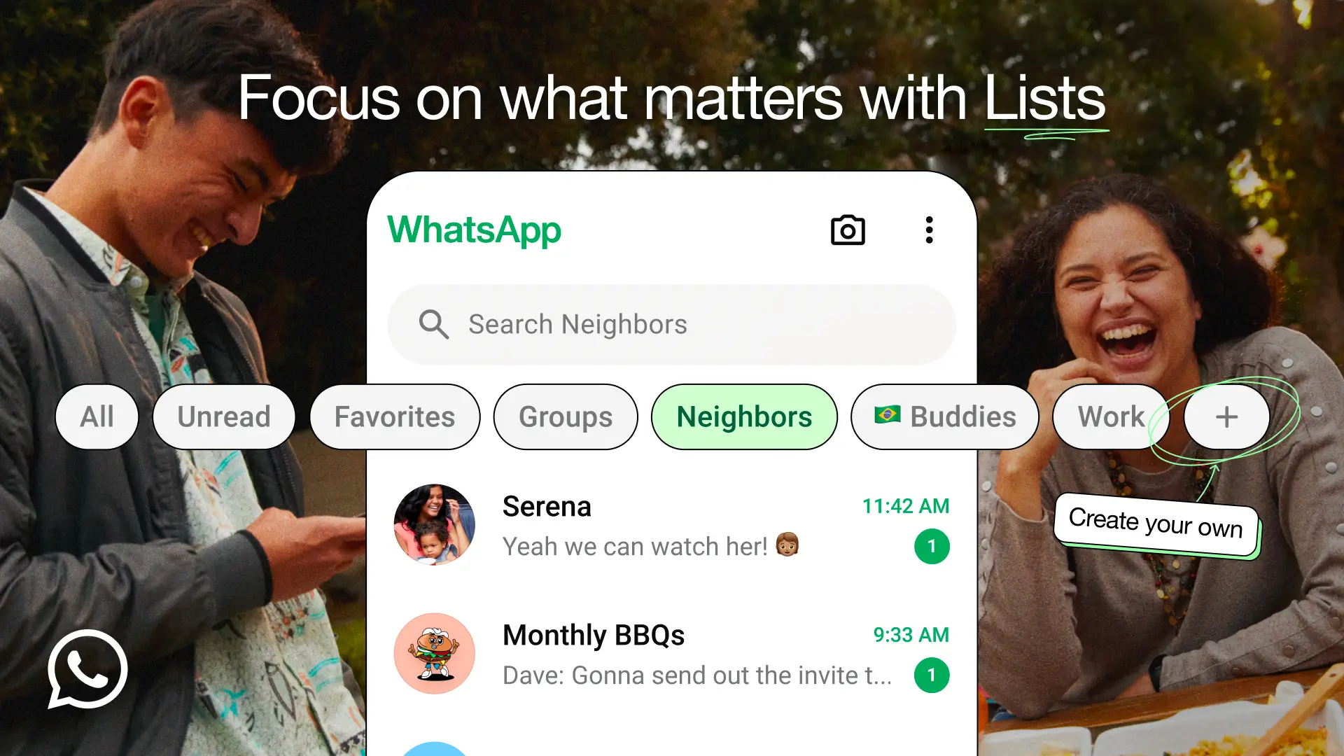 Özel liste ile WhatsApp kullanıcıları yeni kategoriler oluşturabilir ve özel filtreler kullanarak sohbetleri sıralayabilir. Örneğin, yalnızca işyeri sohbetler veya gruplar için bir "iş" özel listesi oluşturabilirsiniz. Bu, bir düğmenin musluğunda iş arkadaşlarınızla hızlı bir şekilde sıralanmanıza ve bulmanıza olanak tanır. WhatsApp işini kullanıyorsanız, “sorgular”, “tedarikçiler” veya “geri ödemeler” için özel listeler oluşturmak, konuşmaları daha iyi düzenlemenize yardımcı olur.