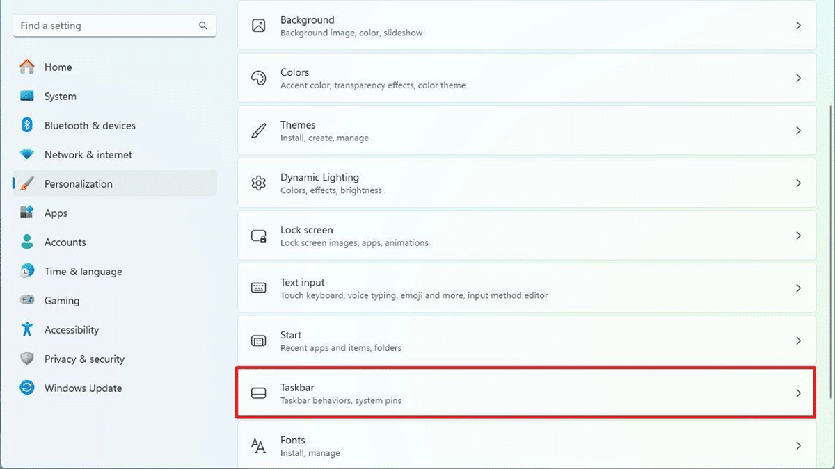 - TıklayınKişiselleştirmeVe tıklayınGörev çubuğusağ tarafta sayfa.