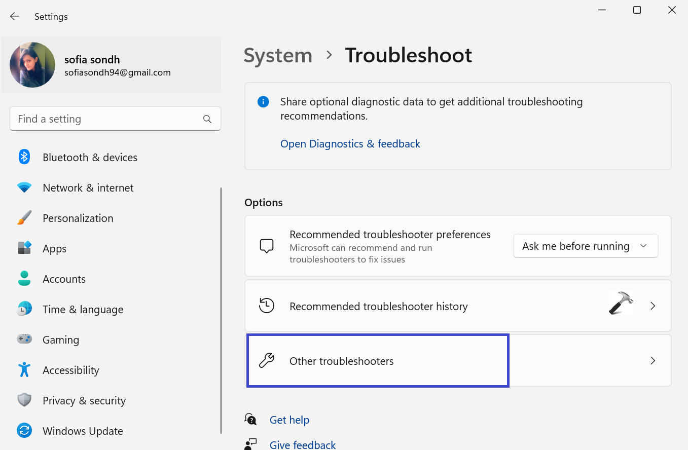 3. “Diğer Sorun Gidercileri” seçeneğini tıklayın.