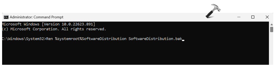 Ren %systemroot%SoftwareDistribution SoftwareDistribution.bak