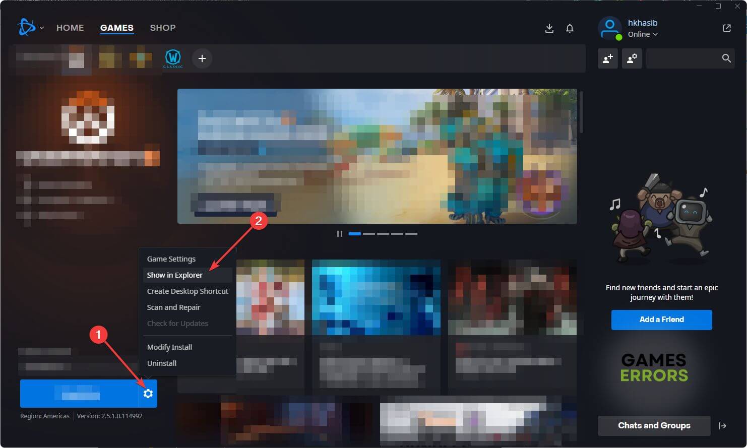 - Battle.net uygulamasının oyun kütüphanesinde,World of Warcraft.
