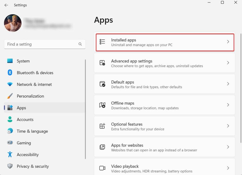 - Sağdan tıklayınYüklü uygulamalar.