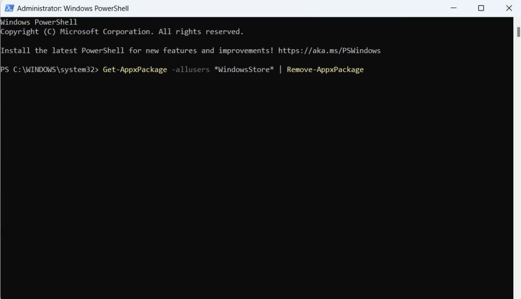 0x87e00017 hatası, bilgisayarınızda Windows Store uygulamasında bir sorun olduğunu gösterebilir. Buradaki en iyi bahis, Microsoft Store uygulamasını kaldırmak ve yeniden yüklemektir. Bu, Windows PowerShell (Yönetici) aracılığıyla yapılabilir -